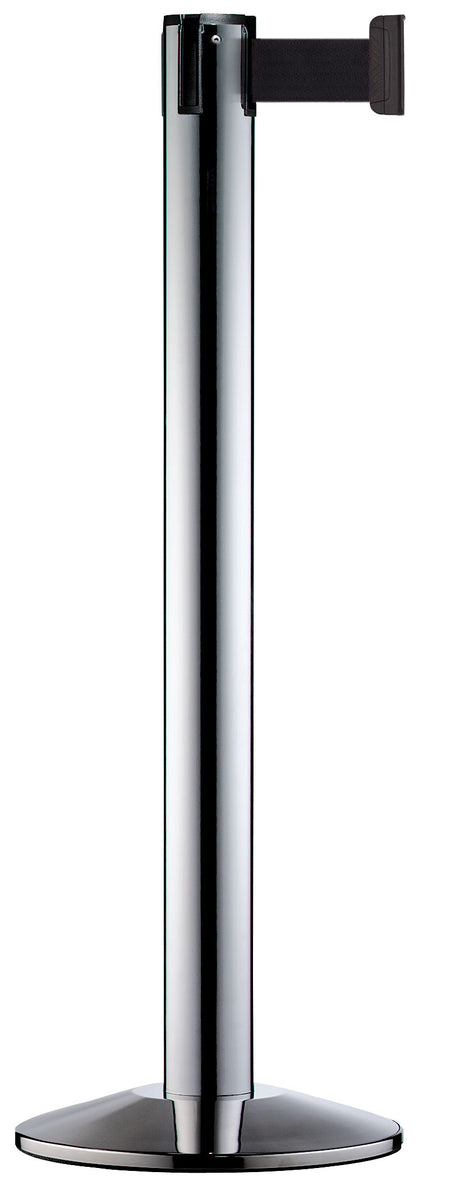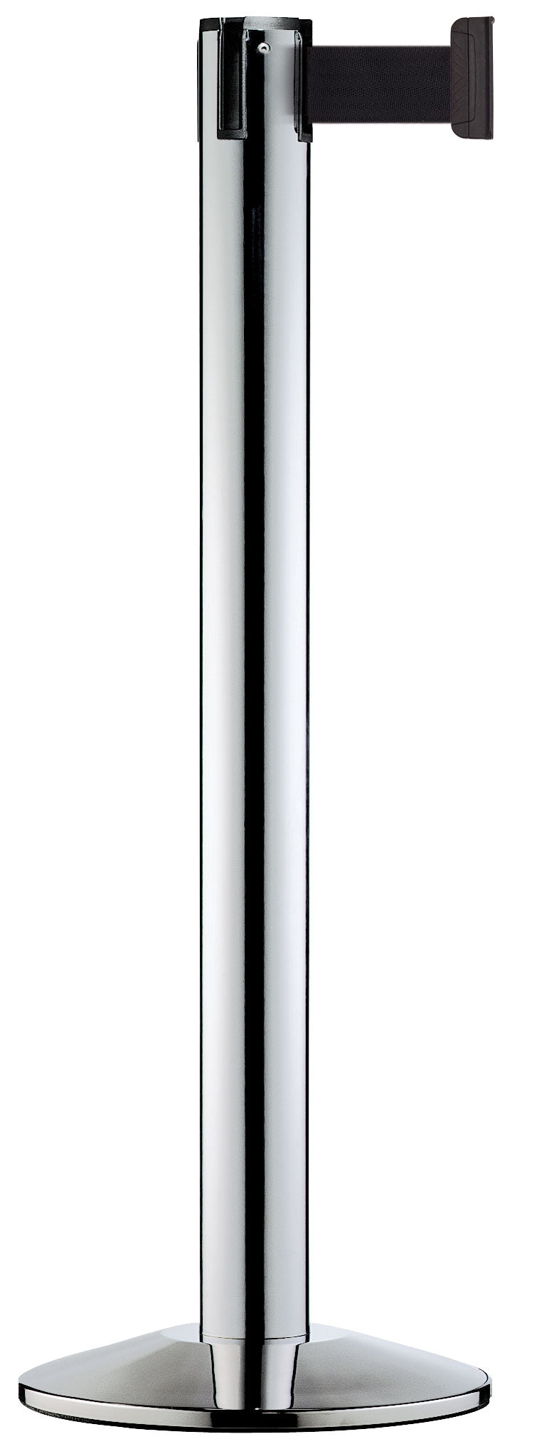 Beltrac Modern is a popular barrier for retailers and those in the leisure and entertainment sector, the elegant design and sleek finish of these retractable barriers are designed to compliment most colour schemes and interior layouts. Each post features 4 dovetail grooves that function as embedded receivers for retractable belts. Each posts come with a standard non-marking rubberized base to protect flooring. Beltrac Modern is our best-seller among the barriers we offer. Modern is mobile and can easily be connected to next barrier in different set-ups. The unique Beltrac connector makes it possible to attach up to 4 belts to the barrier. Beltrac Modern has a height of 1m and is made out of stainless steel. It stands on a ruberised base to avoid scratches on your floor. The retractable belt has a length of 2,3m.