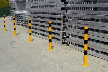 - Heavy bollard for use as a crash guard in front of entrances, service stations, and halls, or to deter traffic entry in particular areas in all kinds of environments