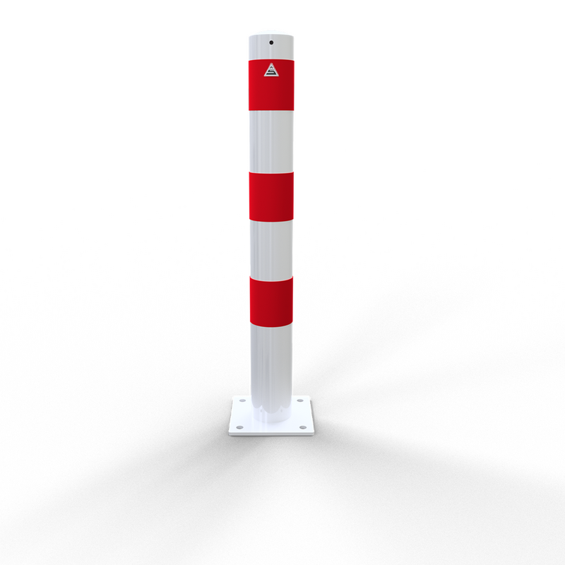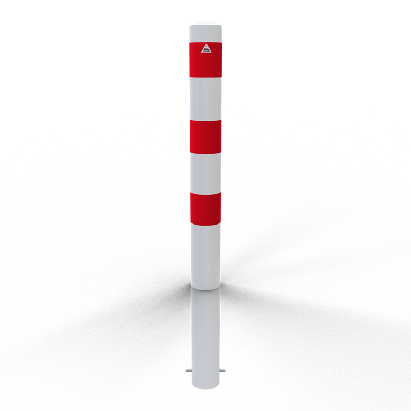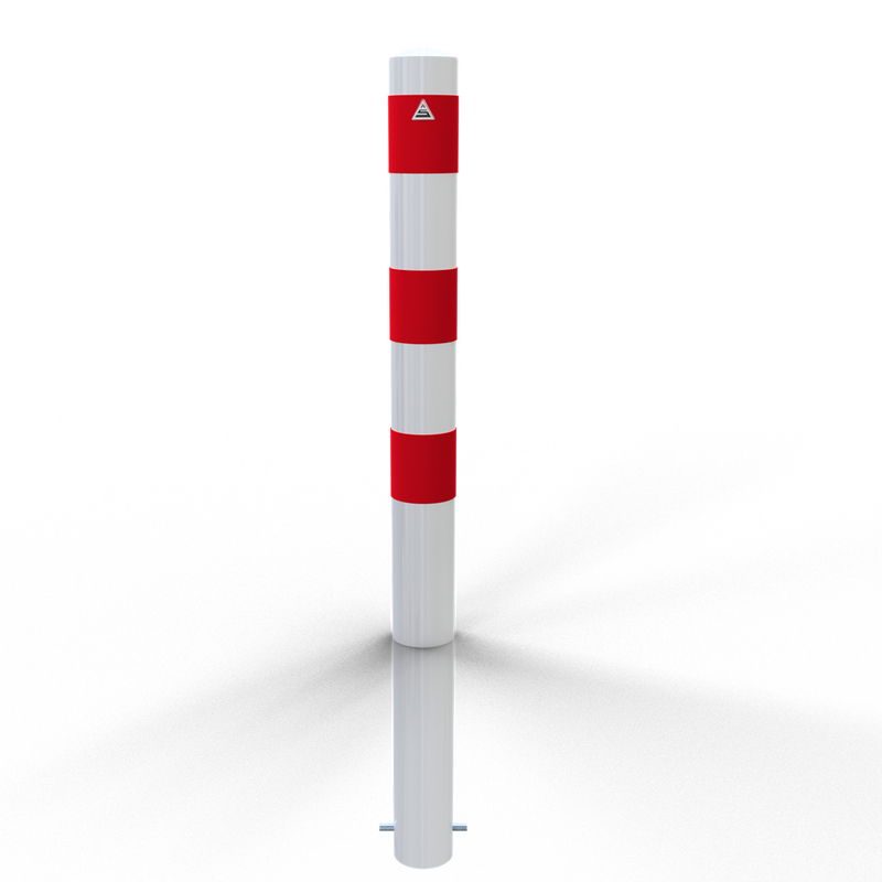 - Steel tube bollard available in hot-dip galvanized finish only or hot-dip galvanized finish with white or yellow powder coating featuring high-visibility red/black reflective stripes